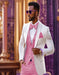 White and Light Pink Tuxedo Wedding Suit - White Dinner Jacket + Vest + Pants + Bow-tie