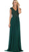 Women V Neckline Long Length Cap Sleeves Long Formal Dress